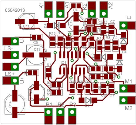 Das Platinenlayout mit Anschlussbezeichnungen ((board1.jpg))