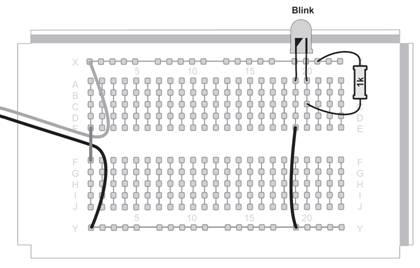 Nach außen hin wird die Blink-LED wie eine normale LED angeschlossen. Ein Vorwiderstand ist unbedingt erforderlich. Und die Einbaurichtung muss stimmen. Der kürzere Anschlussdraht ist die Kathode (Minus-Anschluss).
