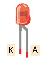 Bei der LED musst du auf die Einbaurichtung achten. Der kürzere Draht ist der Minuspol (die Kathode K) der längere Draht ist der Pluspol (Die Anode A). Man kann von außen den größeren Halter für den LED-Kristall auf der Kathoden-Seite erkennen. Der K-Anschluss hat außerdem eine kleine Abflachung am Gehäuse. Das ist auch bei den farbigen LEDs so. Bei der weißen LED gibt es zusätzlich eine gelbliche Leuchtfarbe, die den LED-Kristall bedeckt. Es gibt LEDs, die äußerlich fast gleich aussehen. Aber ein Blick von vorn durch die Linse hilft jederzeit, die weiße LED auch im ausgeschalteten Zustand zu erkennen.
