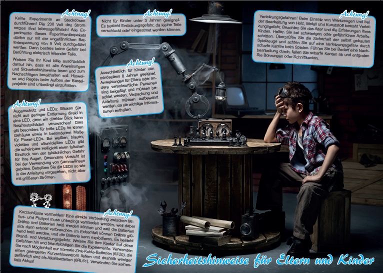 Diese Seite ist aus dem Manuskript zum Handbuch des Kalenders entstanden. Das gedruckte Handbuch ist des Kalenders ist aufwendig und ansprechend gestaltet, kann aber an manchen Tagen etwas abweichen. An einer Stelle im Handbuch ist mir übrigens ein Fehler passiert. Ich habe die Kapazität der Batterie mit 2000 mAh angeben. Das stimmt jedoch nur, wenn man ein Batteriefach mit sechs Mignon-Zellen verwendet. Die Blockbatterie hat dagegen nur ungefähr 500 mAh. Auf dieser Seite steht es richtig. Eine Batterie sollte jedenfalls bei sorgfältigem Umgang für alle Versuche bis Weihnachten ausreichen.