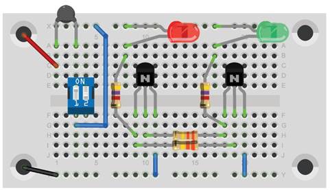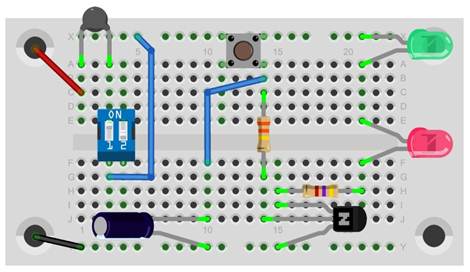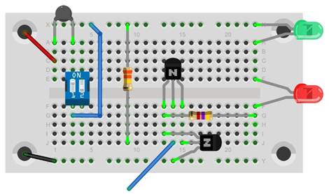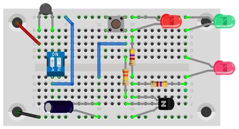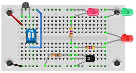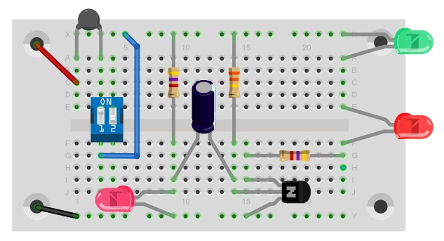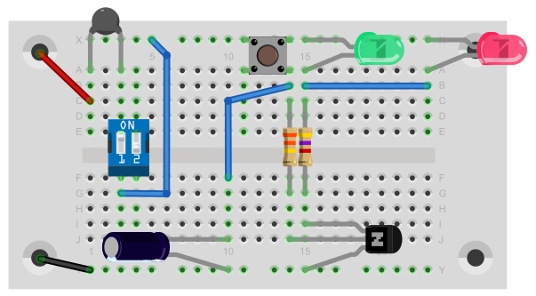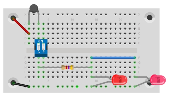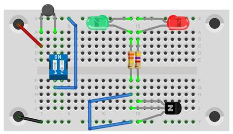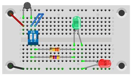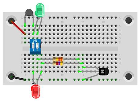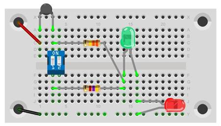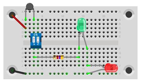 LEDs gemeinsam, die rote und die grüne. Und mit dem Schalter kannst du beide