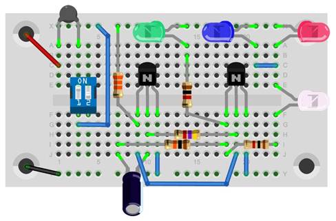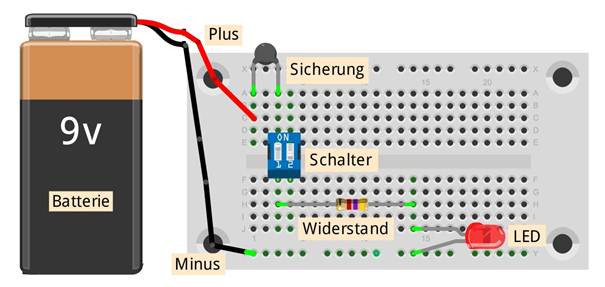 erzeugte Licht hin. In diesem Schaltbild erkennst du sehr leicht, dass alle