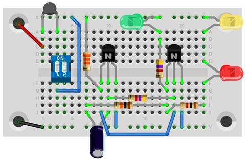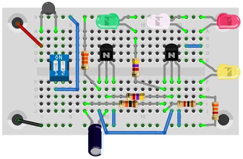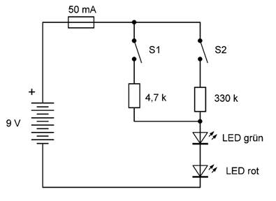 sie nun mit in die Schaltung ein, wie es das Bild zeigt. Nun leuchten beide