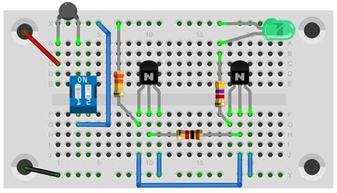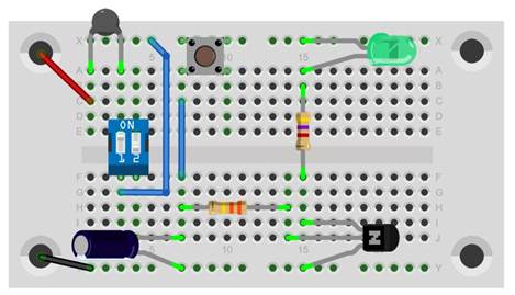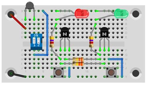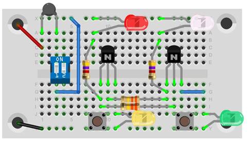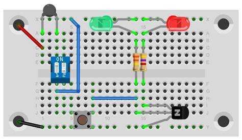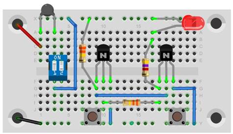 Widerständen. Mit den beiden Tastern kannst dudie LED ein- und ausschalten.