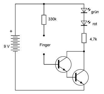 Berühre nun den rechten Transistor mit zwei Fingern, sodass