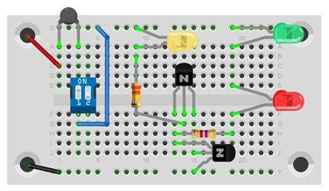 Transistor. Das Ergebnis ist umgekehrt, die LED leuchtet schwächer. Der