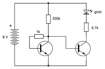 den Basisstrom für den linken Transistor leiten. Die Schaltung ist nur ganz