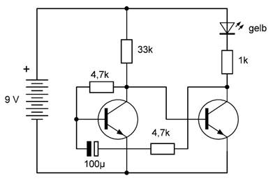 wechselt das Flipflop selbständig den Zustand. Wie schnell das Blinken ist und