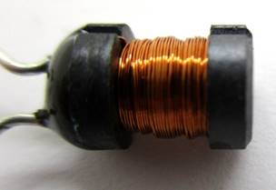 Hinter dem Türchen Nr. 20 findest du ein Bauteil mit zwei Anschlussdrähten. Es ist eine Drahtspule auf einem Kern aus Ferrit. Ferrit ist ein keramisches Material ähnlich wie Porzellan, aber es enthält Eisen und ist daher magnetisch. Der aufgewickelte Draht wird von einer schwarzen Hülle verdeckt. Du kannst das Bauteil an deinen Kompass halten. Nordpol und Südpol reagieren gleich, die Spule ist also magnetisch aber nicht magnetisiert.