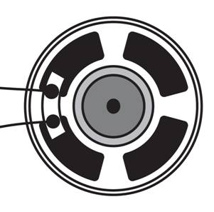 Auf der Rückseite befindet sich ein starker Magnet. Im Inneren verborgen gibt es eine Drahtspule, deren beide Anschlüsse mit den Kontakten und den angelöteten Kabeln verbunden sind. Die Membran lässt sich deshalb durch einen elektrischen Strom bewegen.