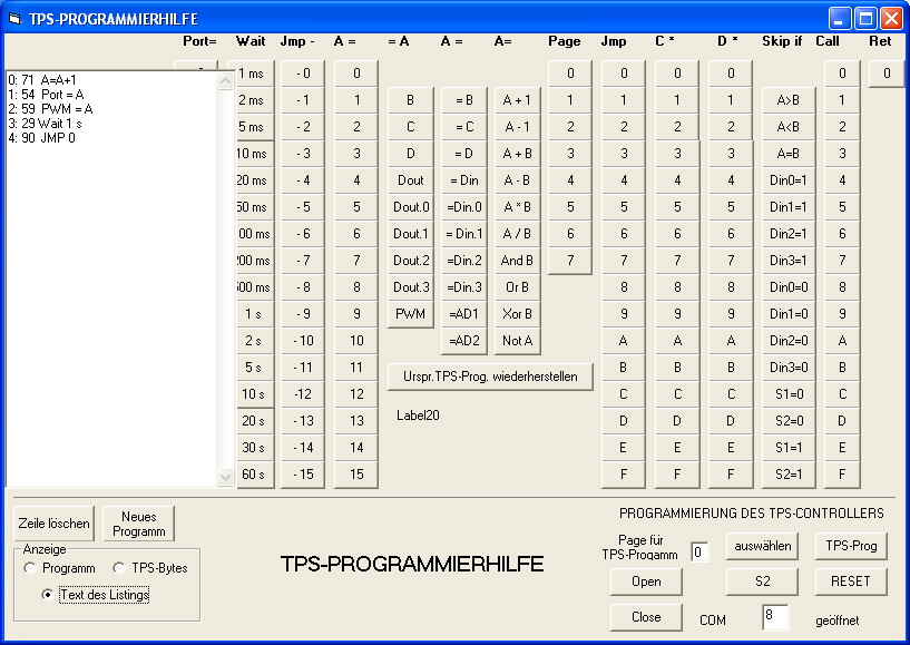 erste Version der TPS-Programmierhilfe, die ursprünglich für