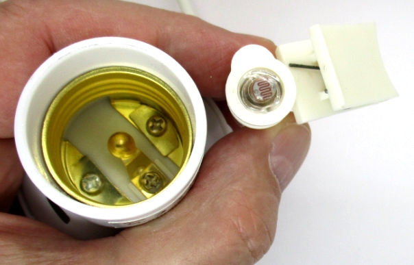 aus dem Ein-Euro-Shop: Eine Nachtlicht-Fassung mit LDR-Sensor. Da war