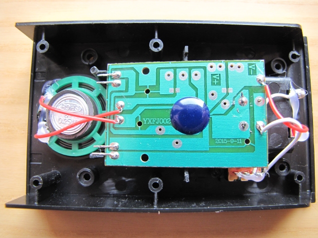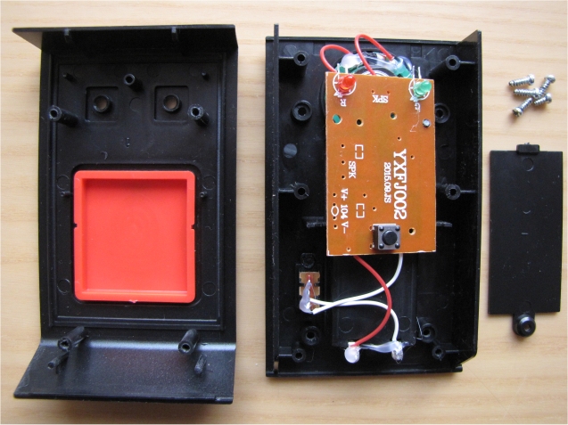 Minilautsprecher sowie einer grünen und einer roten LED ausgestattet
