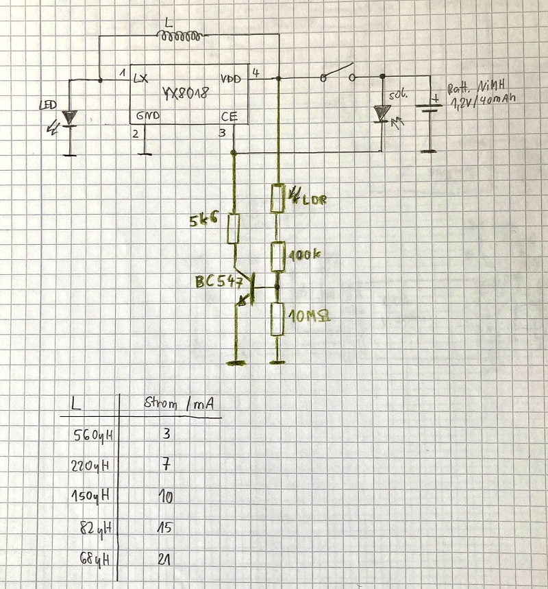 erst bei absoluter Dunkelheit losgeht, habe ich die Schaltung etwas