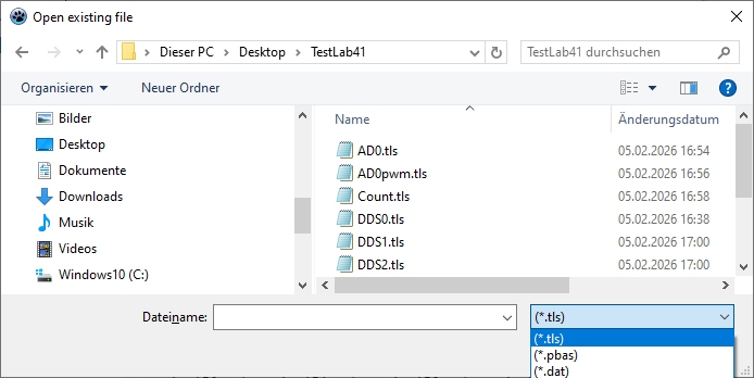 .pbas auswählen. Und auch vorhandene Datensätze vom Typ .dat können