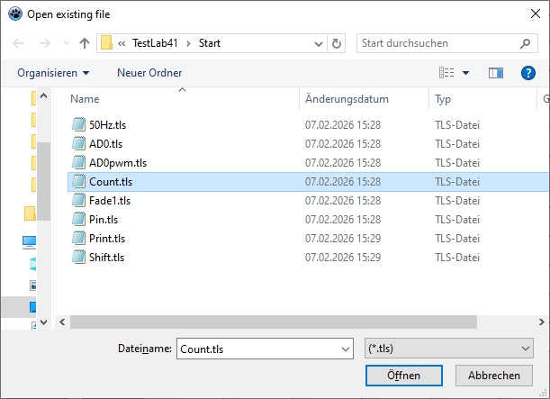 ein neuer Programmname eingegebenen werden, wobei die Endung .tls automatisch