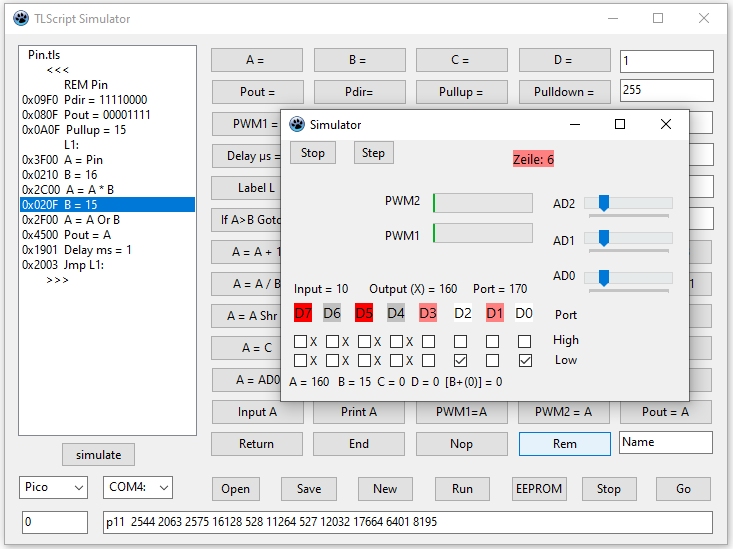 TLScript Simulator von Günther Zivny, der bereits für PicoBasic
