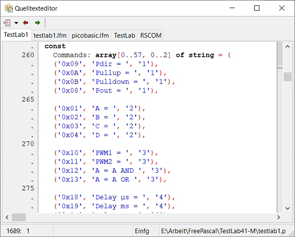 geschieht mit der Programm-IDE TestLab, welches in Pascal programmiert