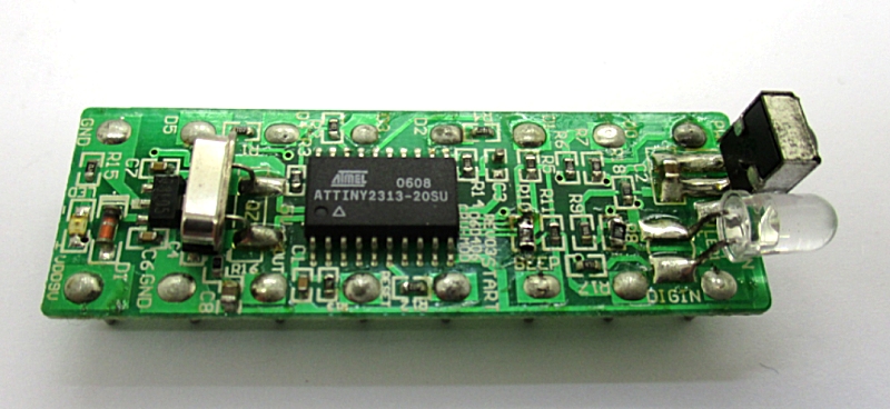 herhalten. Quarz, Mikrocontroller Tiny2313, IR-Diode und IR-Empfänger