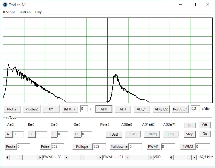 angeschlossen. Ein Test im TestLab zeigte, dass die PWM-Frequenz von 1,5