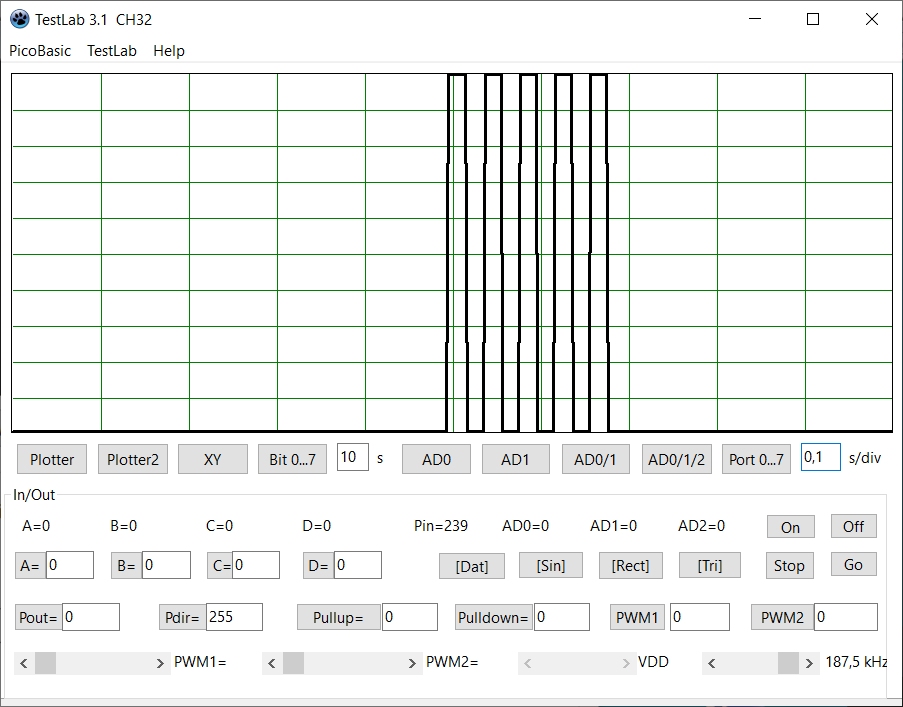 Im TestLab-Oszilloskop konnte die Übertragung aufgezeichnet werden.
