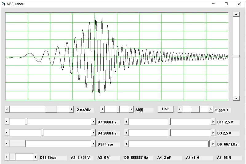 Messung des eigenen 2-kHz-Signales über 10 kΩ an 10 nF