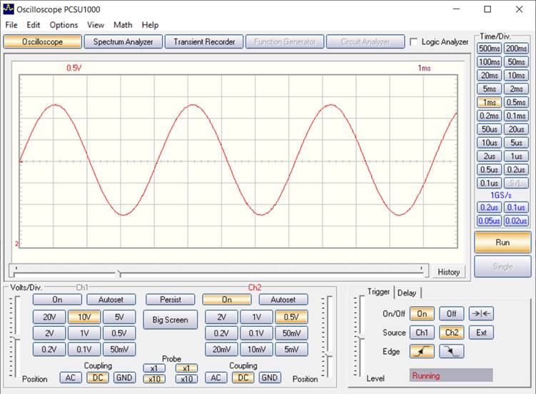 Das Oszilloskop ist mit seiner Abtastrate von 62,5 kHz bereits voll tauglich für den gesamten NF-Bereich. Entscheidend ist ja, dass die Abtastrate mindestens doppelt so hoch liegt wie die höchste vorkommende Signalfrequenz. Im Audiobereich verwendet man oft eine Abtastrate von 44,1 kHz für den Frequenzbereich bis 20 kHz, wobei allerdings sehr steilflankige Filter eingesetzt werden. Die Abtastrate liegt also höher als erforderlich. Daher kann auch das mit dem Arduino realisierte Oszilloskop schon typische Audiosignale korrekt darstellen.