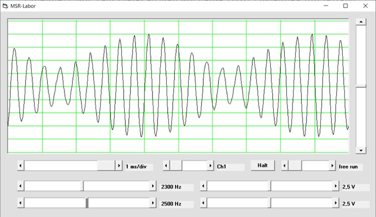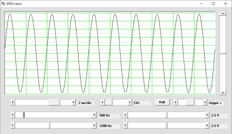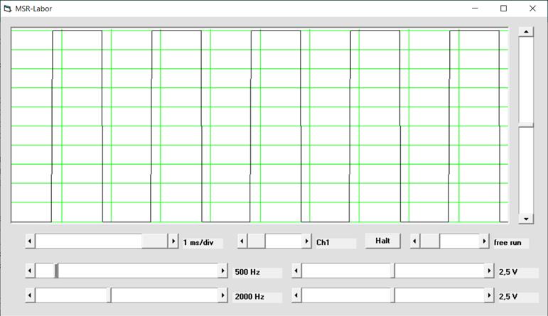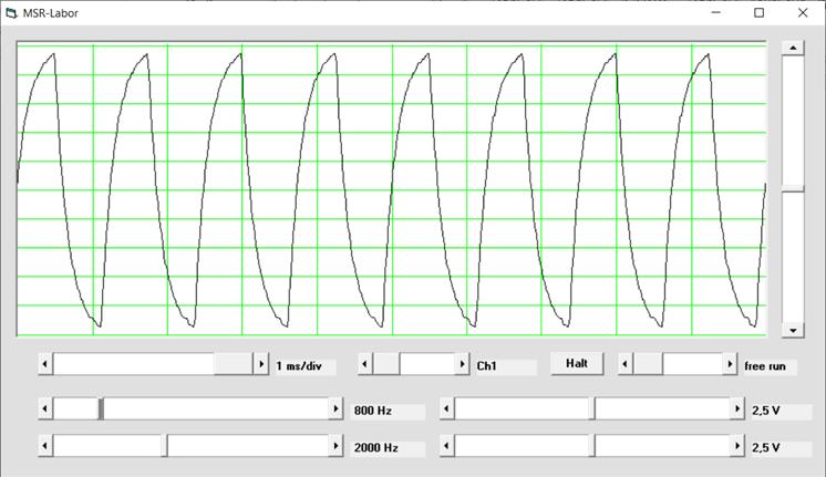 also 1 Millisekunde pro Skalenteil (Ablenkzeit 1 ms/div).