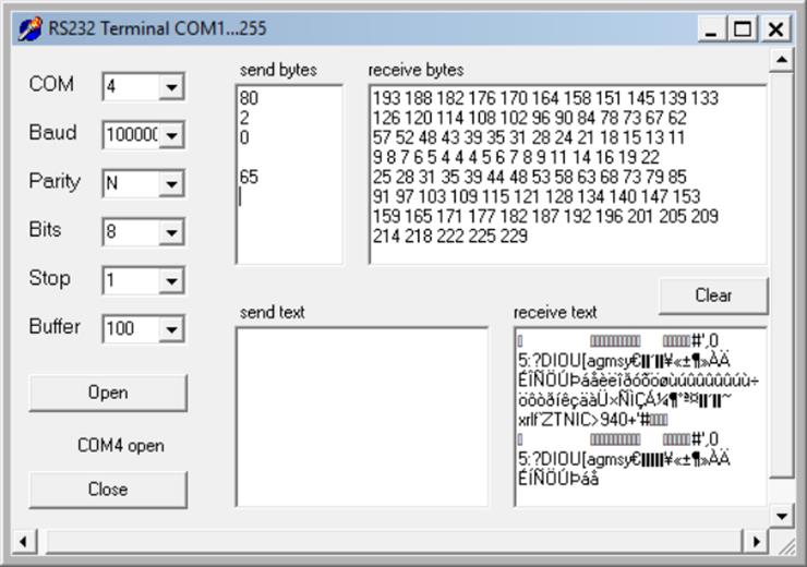 Einzelbytes zu empfangen und darzustellen. Um eine neue Serie zu starten, muss