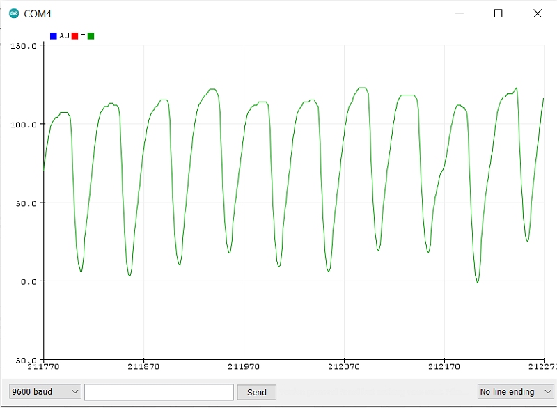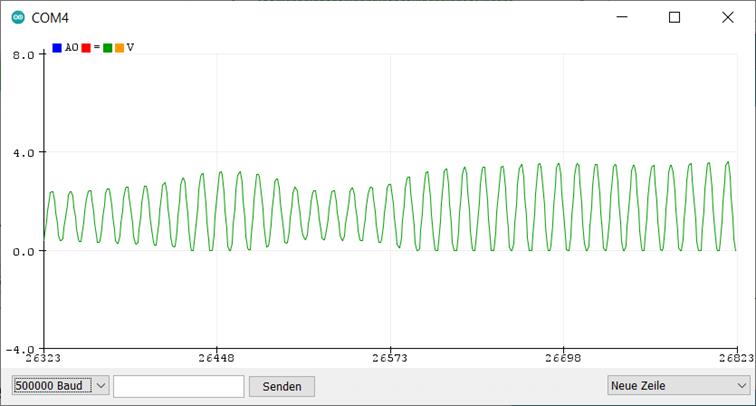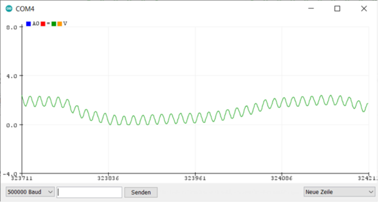 Der serielle Plotter zeigt 500 Messwerte von links nach