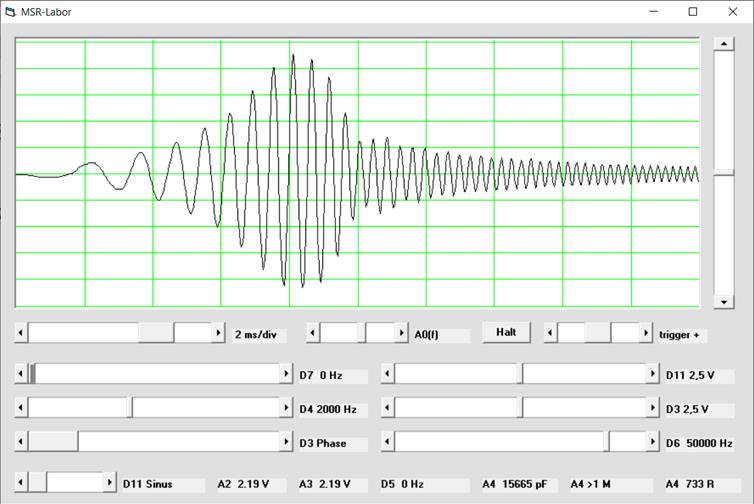 2 ms/div. Bei zu langsamer Messung kommt es zu einer Unterabtastung.