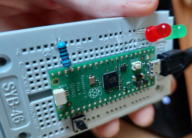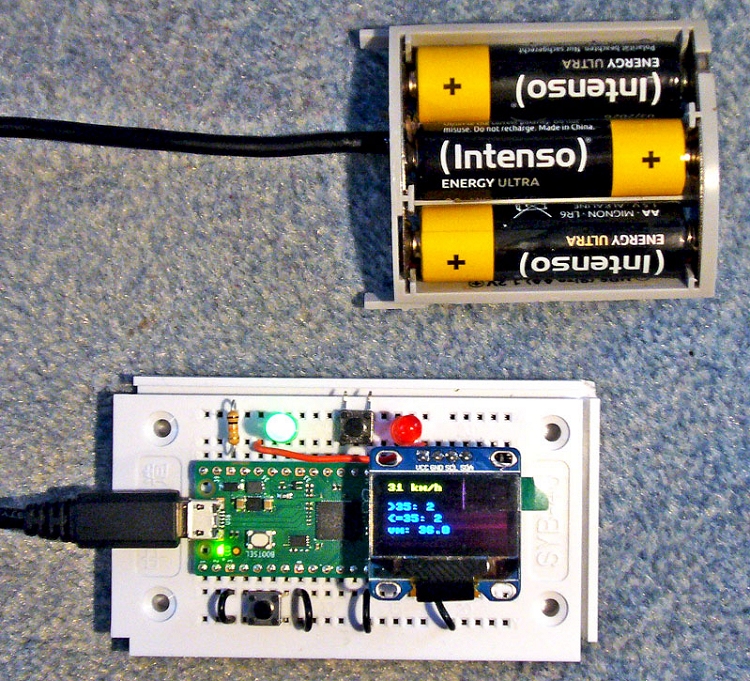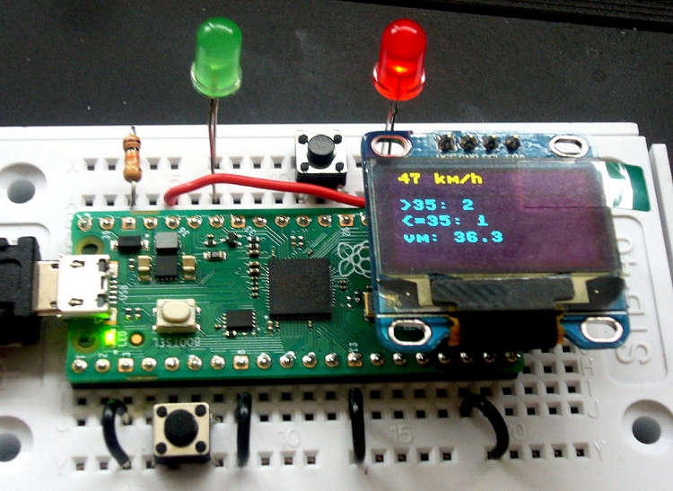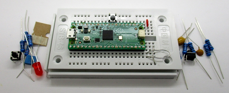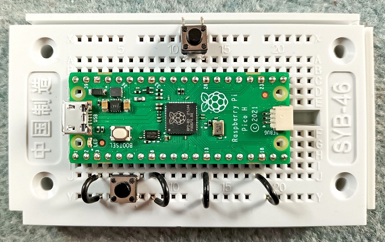 des Pico. Der untere Taster an GPIO2 und 4 gegen GND dient zur