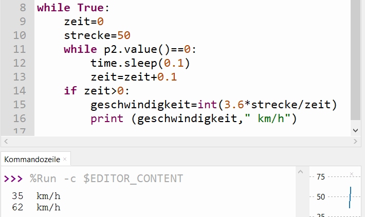 gedrückt, wie das Auto auf dieser Strecke ist. Das Programm berechnet